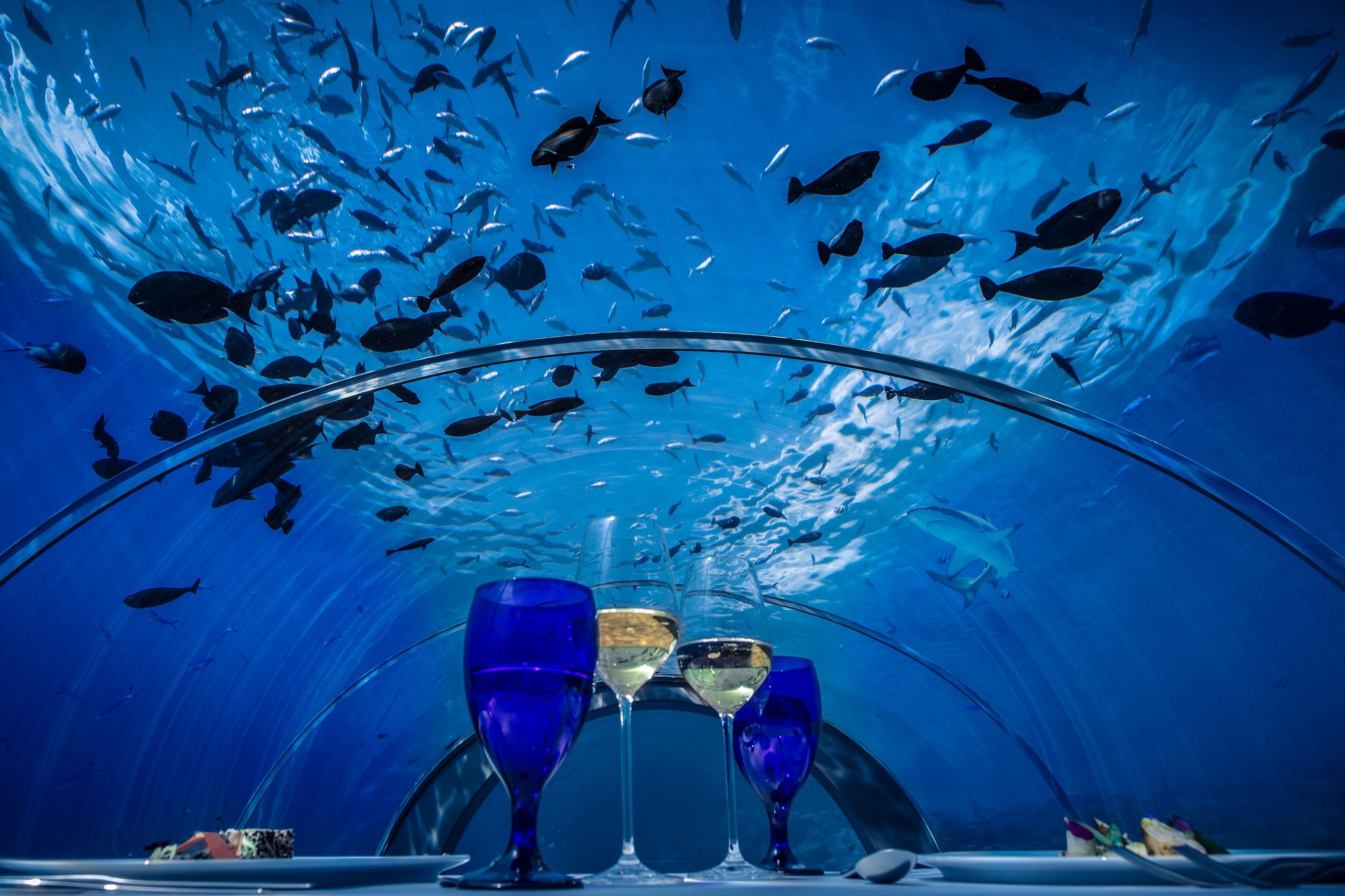 Hurawalhi is an adults-only luxury resort that blends barefoot romance with contemporary design, offering beachside or overwater villas and a personalized escape. From serene relaxation to thrilling water adventures, guests can also enjoy unique experiences like dining at 5.8 Undersea Restaurant—the world’s largest all-glass underwater restaurant—where a gourmet tasting menu is served 5.8 meters beneath the ocean’s surface.