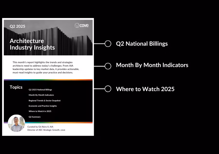 In Q2’s Architecture Industry Insights, curated by Ed Akins II, AIA, LEED AP, we explore billing trends, staffing shifts, and rising client interest — even as design contracts remain slow to follow. With updates from the AIA ABI and broader economic signals, this quarter highlights how firms are navigating caution with clarity.