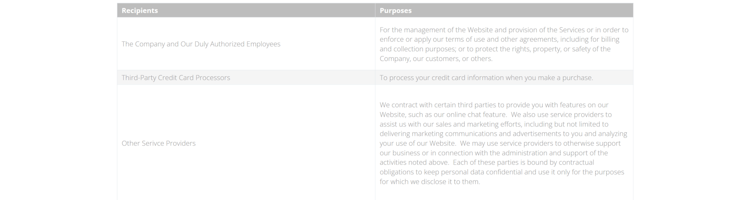 Service providers are legally and contractually required to abide by our instructions when processing personal data and will only receive personal data according to the purposes of the service agreement or any other type of contract entered into with us.