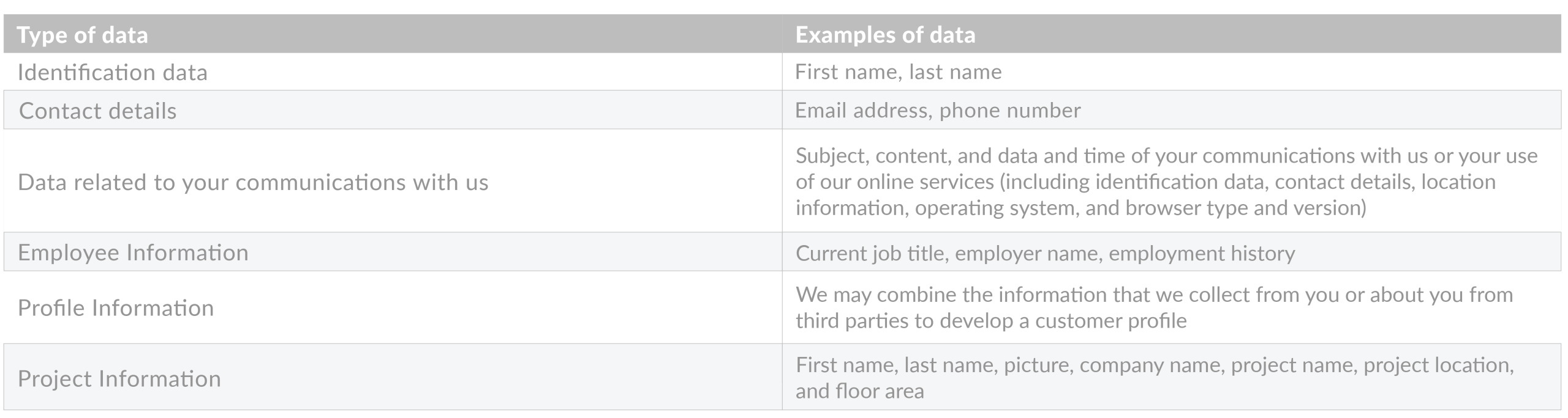 We collect personal data relating to prospective and existing customers, for instance when an individual submits a request through our Services or registers on our Website (e.g., if you sign up for a live or on demand webinar). Some of this information may be regulated under applicable data privacy laws.