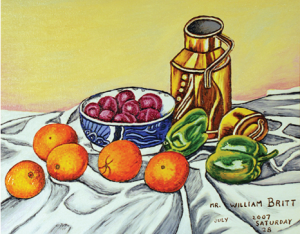 William Britt is an accomplished and internationally recognized self-taught still-life and landscape painter with a developmental disability who is represented by Pure Vision Arts. Born in 1935, he was sent to the infamous Willowbrook State School in Staten Island New York as a child where he remained for 34 years. A frustrated young boy, Britt was given paints by his doctor and encouraged to express himself. After the closure of Willowbrook, Britt moved into a group home in Westchester, New York where he continued to further his artistic technique. He now lives in his own home with an attached art studio and woodworking shop where he crafts his frames as well as furniture in West Haverstraw, New York, an area known for its natural beauty. Britt’s masterful, intricately detailed paintings in the folk art tradition have garnered him several awards, including a Joseph P. Kennedy, Jr. Foundation Award in 1986 for Outstanding Artistic Achievement. At a presentation at the Kennedy Center in Washington, DC, Maya Angelou read her poem, “William Britt” to honor William’s contribution and experiences. Britit’s work is included in an ever-growing number of collections including those of Nancy Reagan, Mario Cuomo, George Pataki, Prince Charles and the Emperor of Japan.
