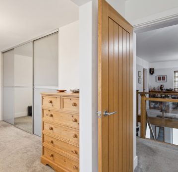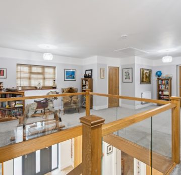 To the first floor, a spacious landing leads to four generous bedrooms. The principal suite benefits from a Juliet balcony overlooking the surrounding landscape, a large dressing room, and a private en-suite. The second bedroom also enjoys the benefit of its own en-suite shower room, providing excellent flexibility for guests or family members. The remaining two bedrooms are well-sized and served by a substantial family bathroom.