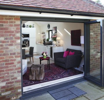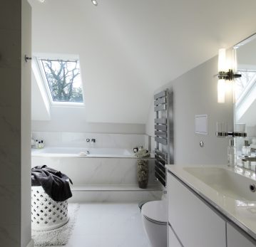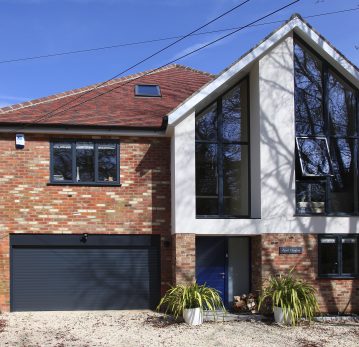 Carefully responding to the site’s physical constraints, the design reorganised the house across three levels to work harmoniously with the changing ground levels. The main entrance was relocated to the lower ground floor, eliminating the unsafe external steps and significantly improving accessibility. A generous open-plan layout was introduced, creating flexible and connected living spaces suited to everyday family life and entertaining. Large, glazed openings were strategically positioned to frame views towards the Penn Estate and draw natural light deep into the interior. Rooflights were incorporated to illuminate areas without direct garden access, ensuring a bright and uplifting atmosphere throughout. Bifold and patio doors within the living room and kitchen establish a seamless connection to the garden, enhancing indoor–outdoor living. Externally, the contemporary façade was composed using a refined palette of render, facing brickwork, handmade clay roof tiles, and aluminium double-glazed windows. A striking internal bridge at the top floor allows views down to the ground floor, reinforcing a sense of openness and visual connection across all levels.